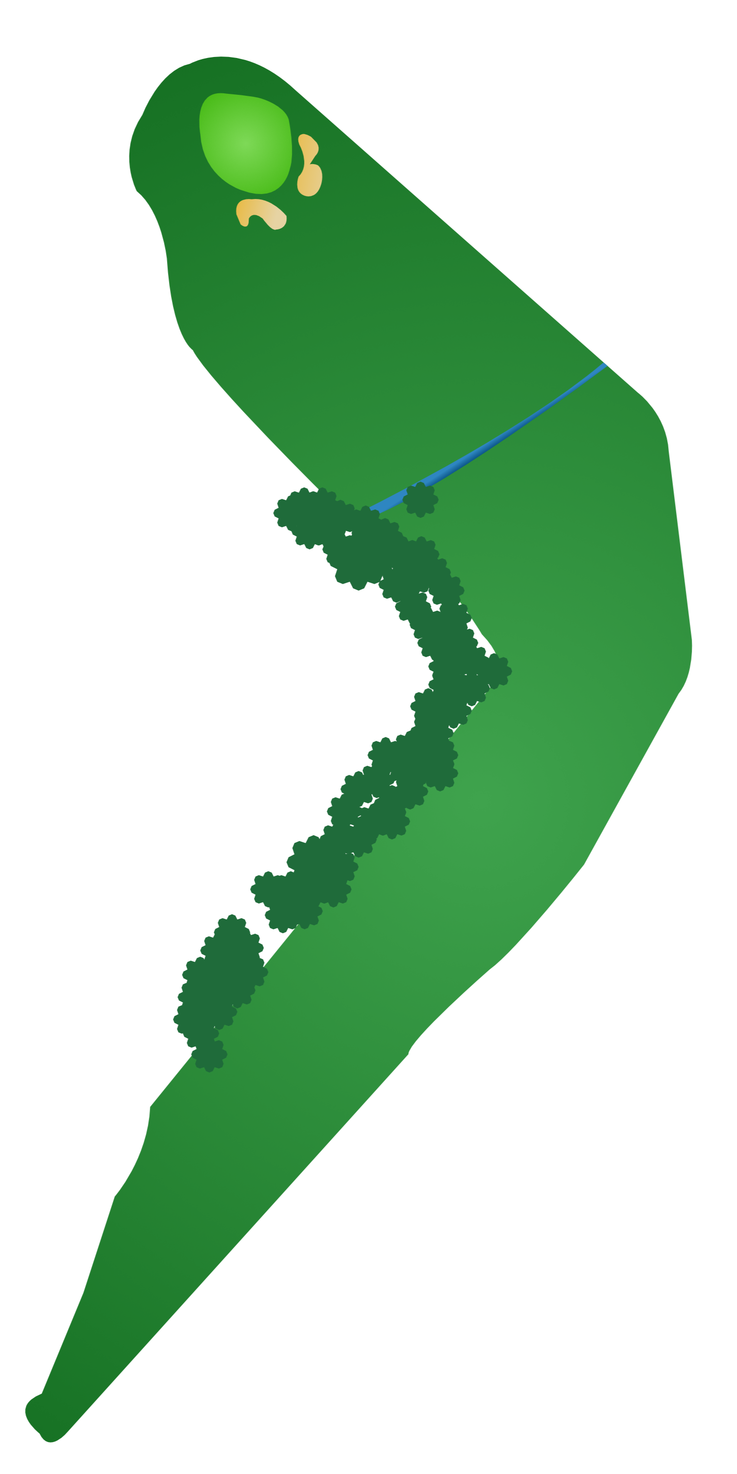 | 12 | Left of the cart path; line of tall grass and trees; all Ground Under Repair (GUR) right of the fairway. |