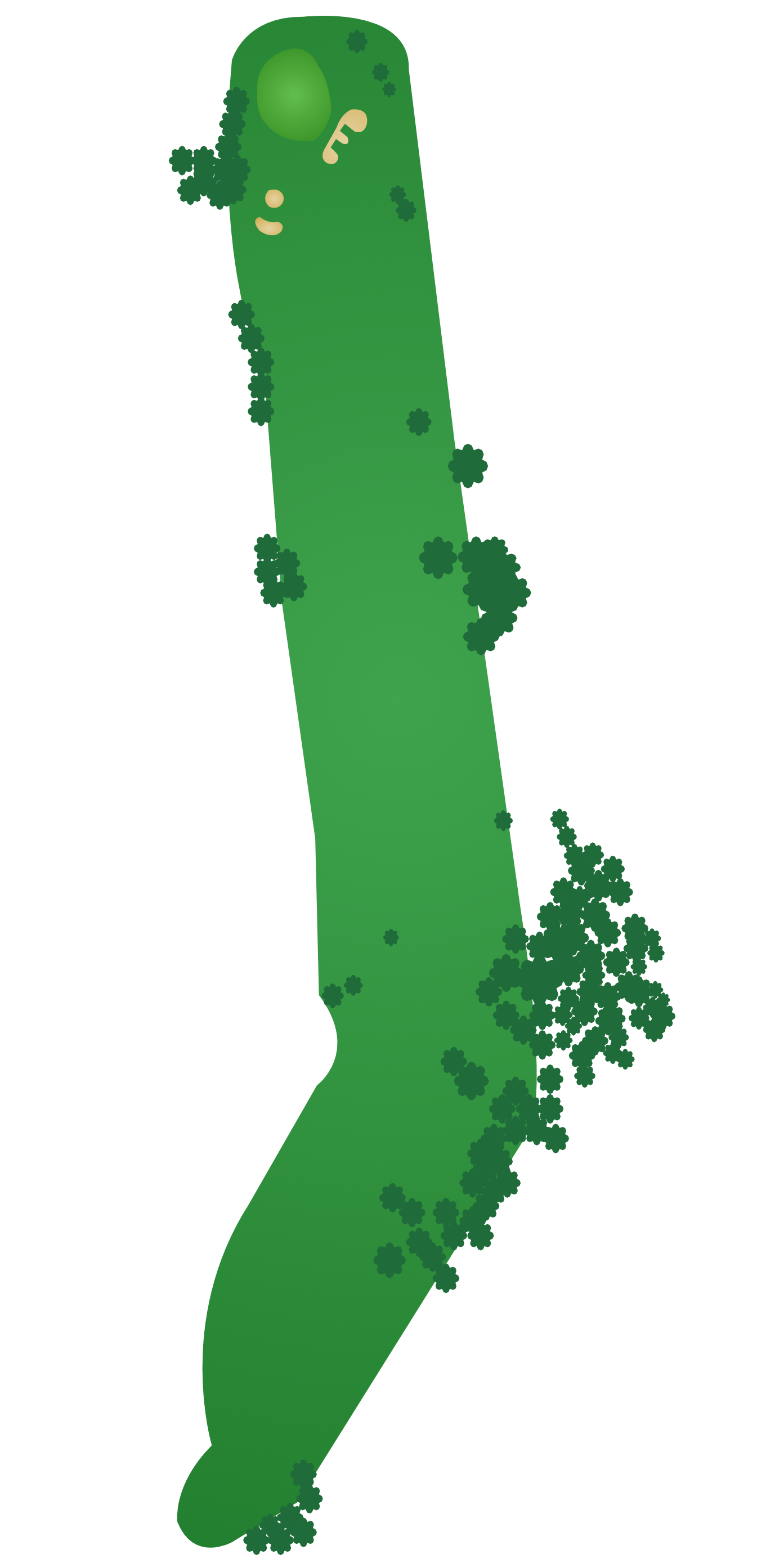 | 15 | Tall grass and trees left, front, and beyond the fairway; area outside the riprap fence right of the fairway (OB); left of the cart path on the dogleg; trees right of the dogleg; area beyond the green. |